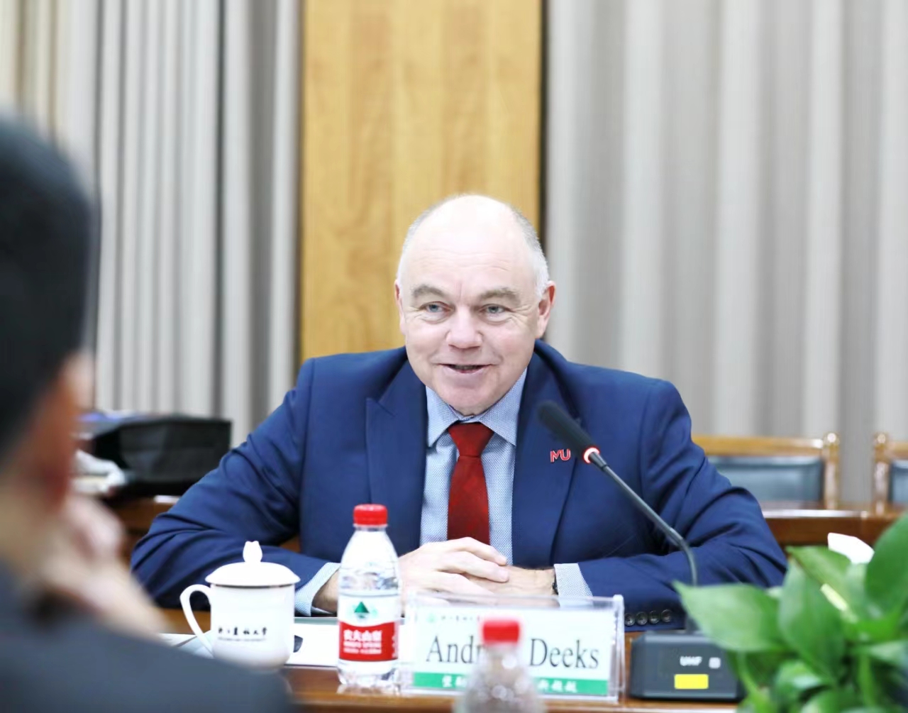 Andrew Deeks對學校的接待表示感謝,并介紹了莫道克大學的研究院所、院系設置、教學設施和科研重點。他希望雙方抓住機遇,進一步拓寬和加深合作領域,如莫道克大學的校訓所言,“共創美好未來”。
