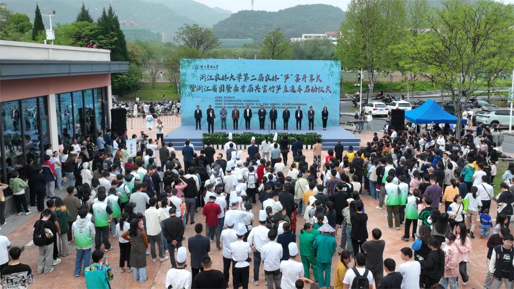 4月13日,浙江農(nóng)林大學第二屆農(nóng)林“筍”宴系列活動在東湖食堂廣場拉開帷幕。校黨委書記朱斌宣布開幕。副校長胡祖吉,省商務廳行業(yè)黨委副書記單軍,省餐飲行業(yè)協(xié)會副會長、省團餐委理事長余雄飛在開幕式上致辭。