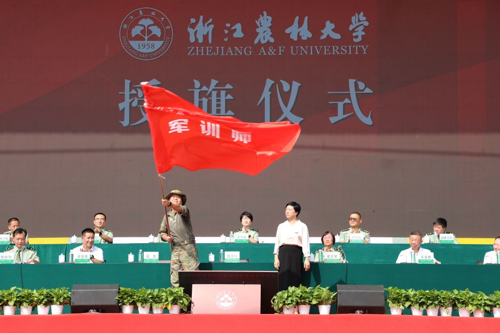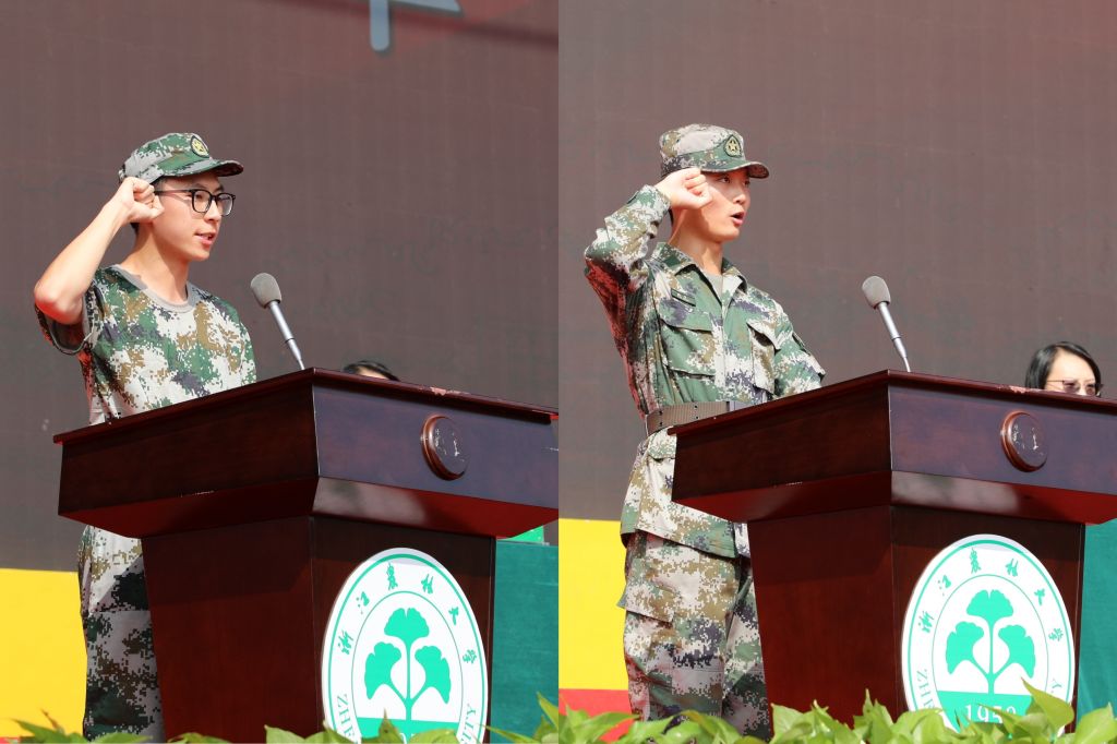 現(xiàn)代農(nóng)學院智農(nóng)242李俊杰同學代表參訓新生發(fā)言,化學與材料工程學院大學生退役士官張萬琮代表軍訓師教官宣誓。他們表示,作為新時代的浙農(nóng)林大人,將秉承“求真、敬業(yè)”的校訓,繼承“堅韌不拔、不斷超越”的學校精神,發(fā)揚“肯干、實干、能干”的“三干”品質(zhì),嚴格要求、堅持到底、奮勇向前。