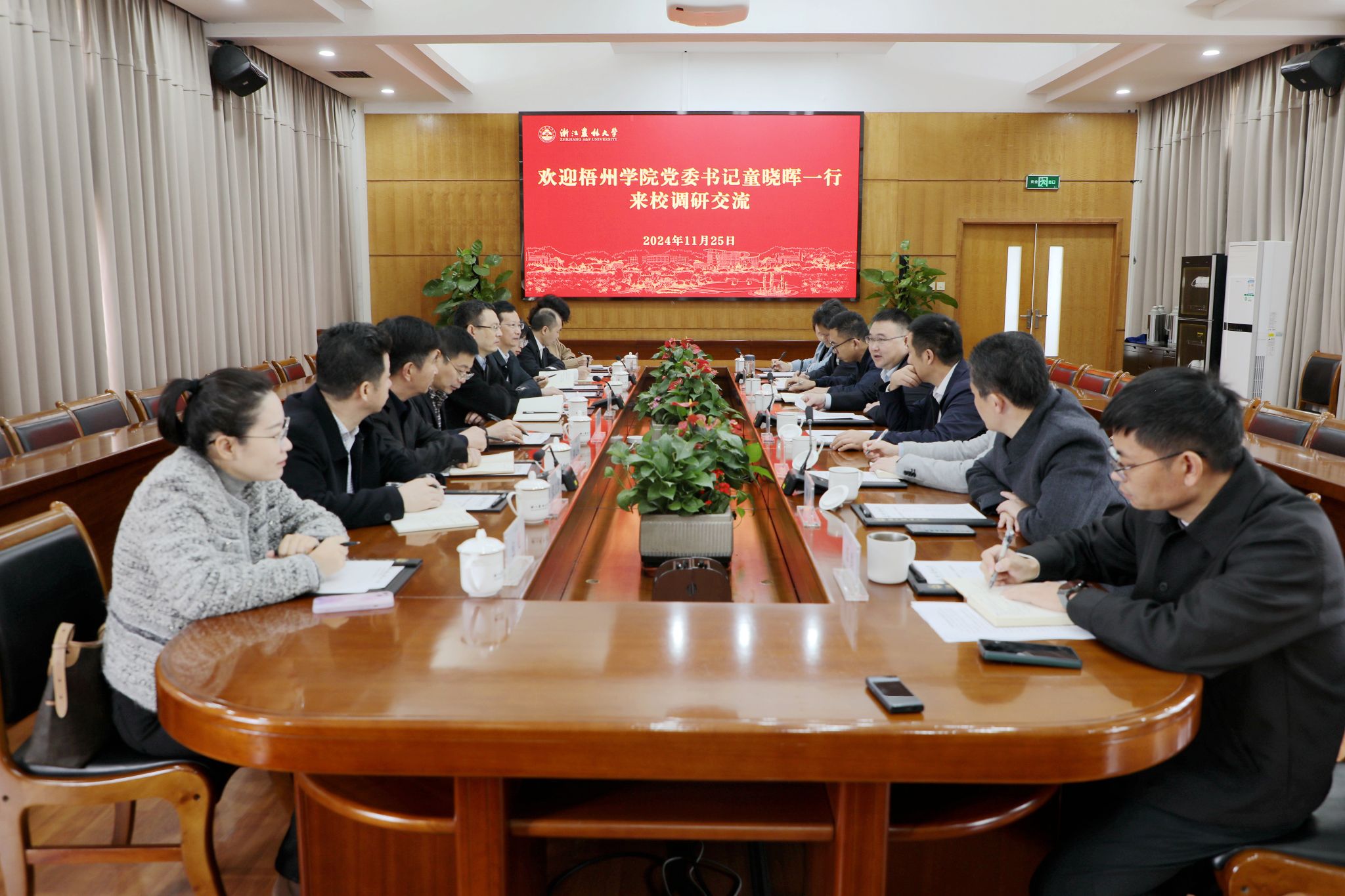 11月25日,梧州學院黨委書記童曉暉、副校長麻新純、紀委書記賓月景一行來校調研。校黨委書記朱斌、副校長徐愛俊參加座談交流。