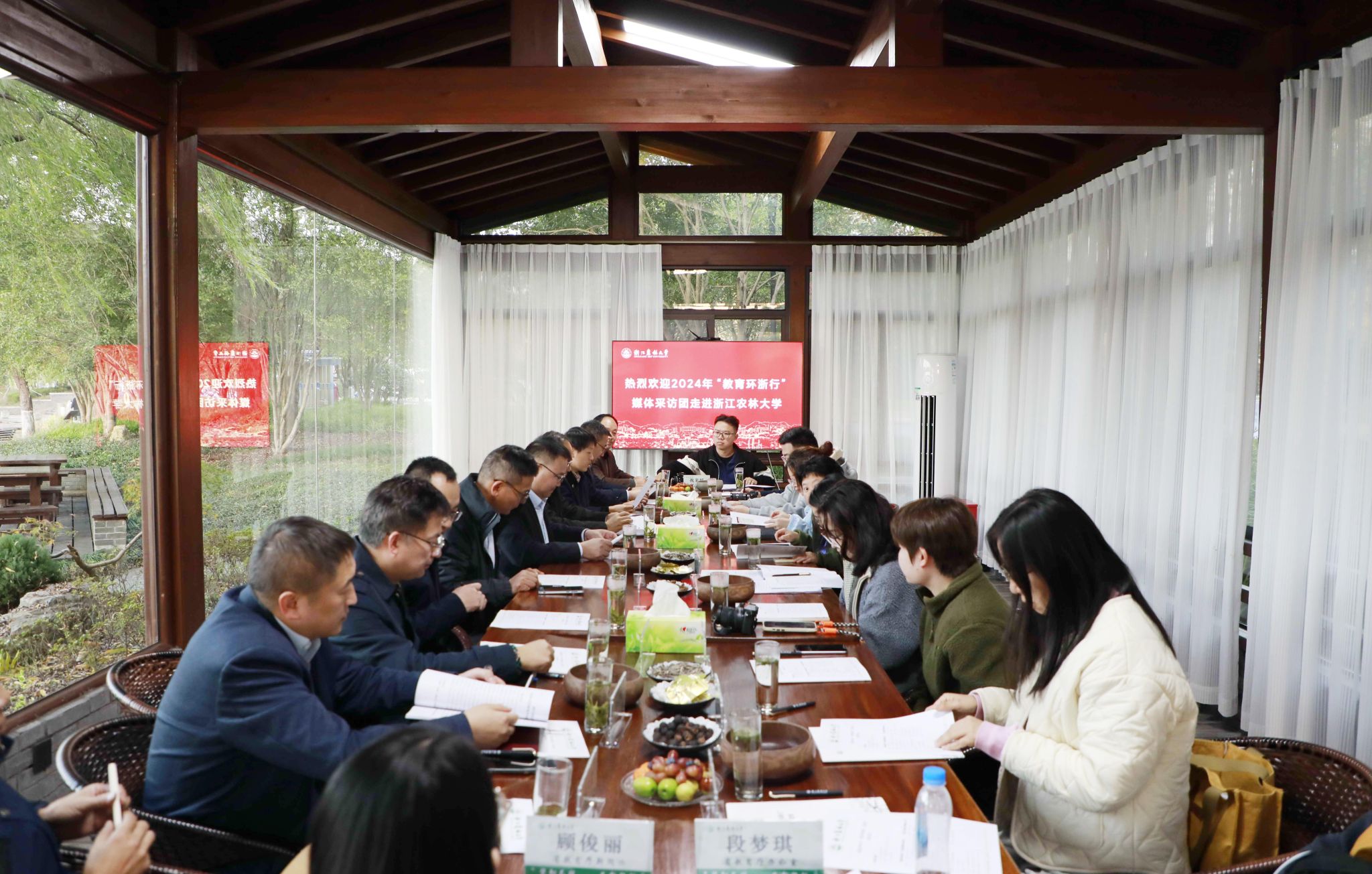 11月27日下午,由浙江省教育廳組織的2024年“教育環浙行”媒體采訪團走進浙江農林大學。來自新華社、中央廣播電視總臺、光明日報、人民網、中國新聞社、中國青年報、浙江衛視等10多家中央新聞單位駐浙機構和省級主要新聞單位的記者,對我校基礎設施提質工程、林學登峰學科建設、服務鄉村全面振興等方面工作進行集體采訪。
