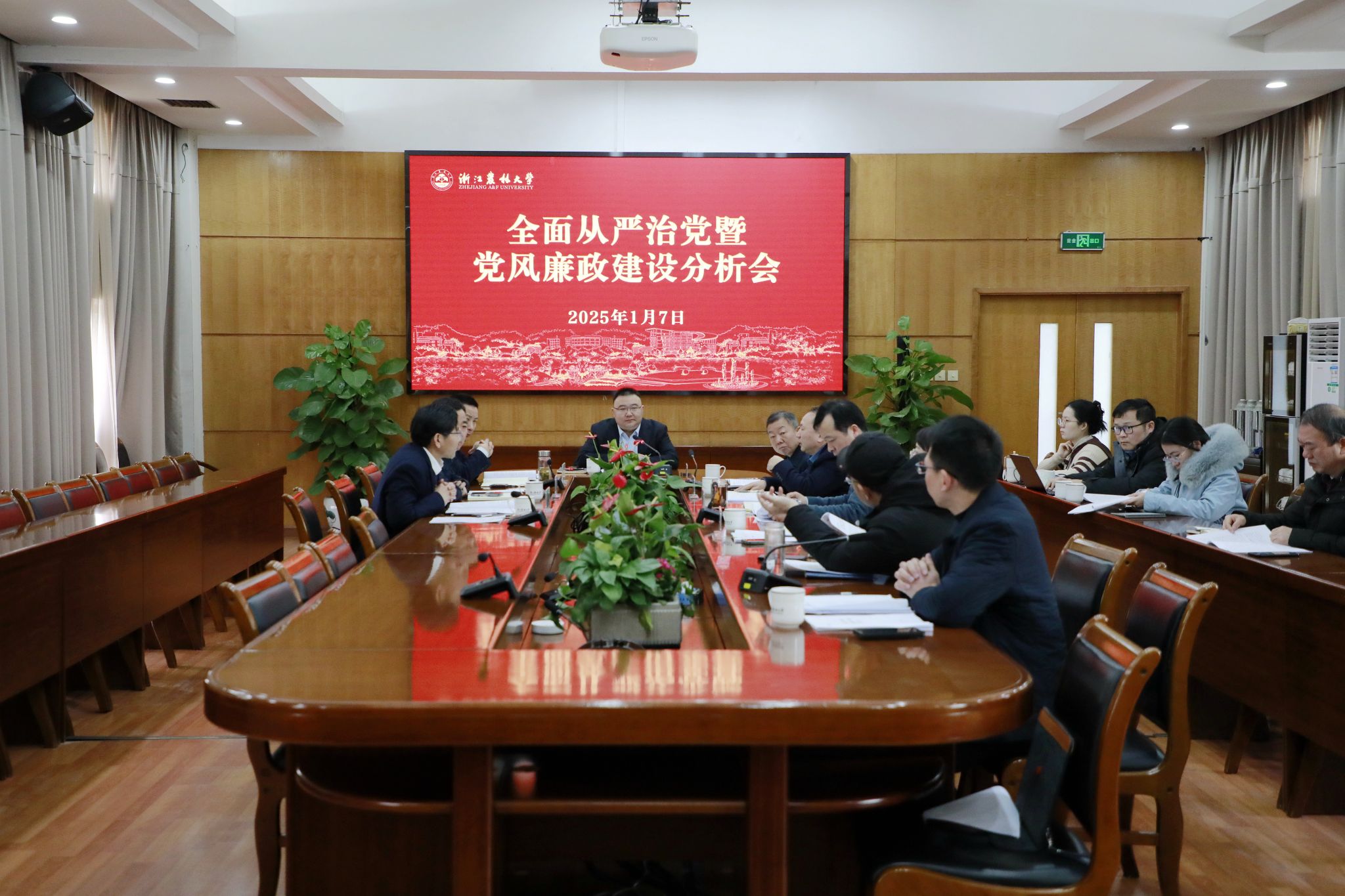 1月7日,校黨委書記朱斌主持召開學校全面從嚴治黨暨黨風廉政建設分析會。校黨政領導班子成員出席會議。