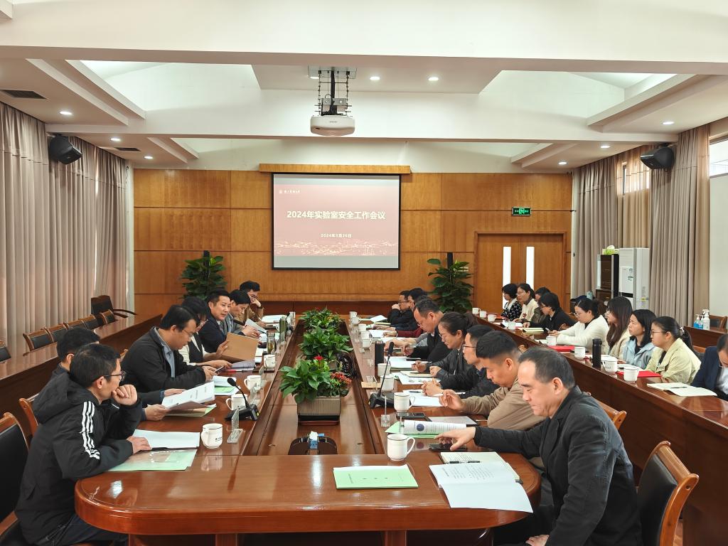 3月26日上午,學校在行政樓302召開2024年實驗室安全工作會議。會議由副校長徐愛俊主持,各二級單位分管領導、管制類化學品優秀管理員代表和設備處相關人員參加會議。