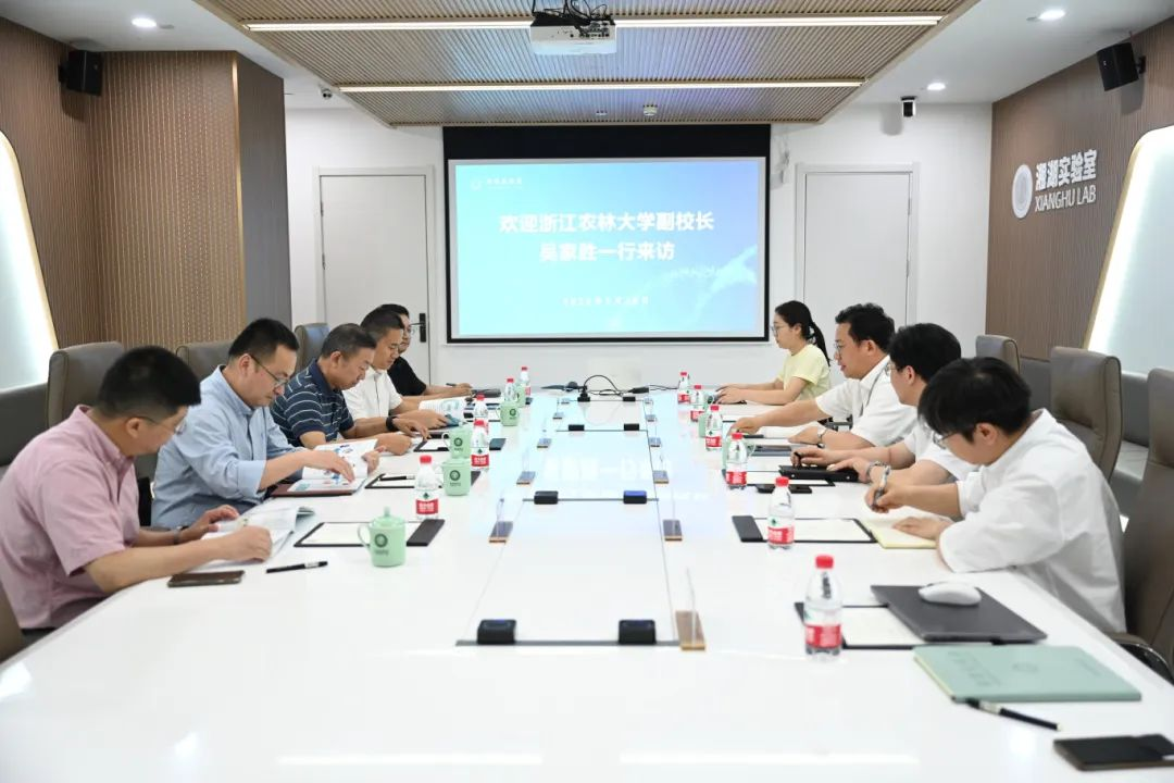 5月30日,副校長、湘湖實驗室戰略咨詢委員會委員吳家勝帶隊赴湘湖實驗室座談交流。科技處負責人陪同。湘湖實驗室常務副主任楊華接待并主持座談。