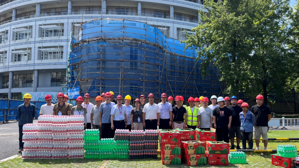 7月20日,副校長胡祖吉代表學校到基礎設施提質工程項目施工現場,向暑期堅守在項目上的施工人員表示誠摯問候,并送上了清涼慰問品,同時對暑期基建改造工作進行了檢查和指導。