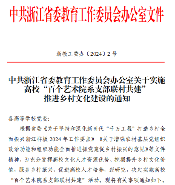 據悉,本次全省高校“百個藝術院系支部聯村共建”活動由省委組織部統籌指導,省委教育工委組織推進,經前期調研、組織申報和綜合遴選,全省高校共有149個項目入選。