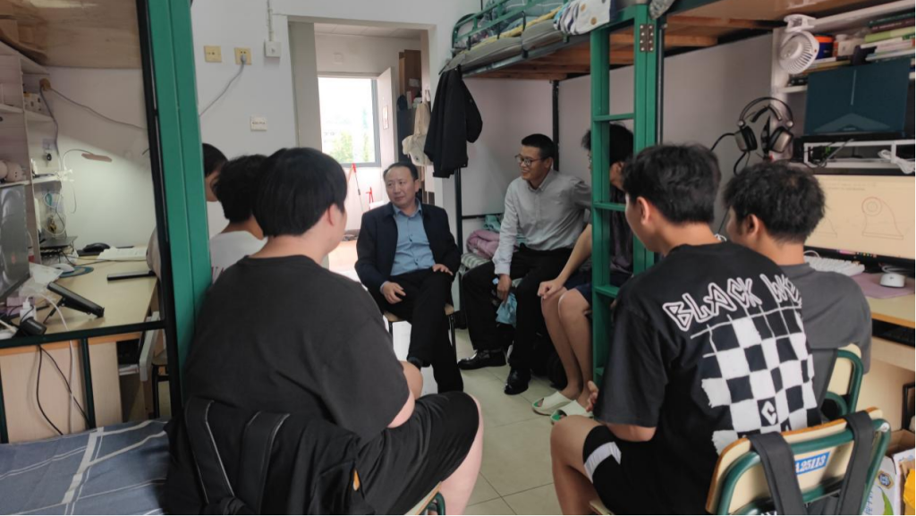 走訪期間,包松永與同學們親切交流,詳細詢問同學們的成長背景、學習情況、發展目標等,鼓勵大家以更飽滿的精神和心態迎接學習和生活,對同學們提出的疑問進行了耐心解答。他勉勵同學們珍惜光陰、發揮自身的學科專業優勢,以科學家精神武裝大腦,強化使命感與責任感,同時注意身心健康,積極參加各種有益活動,豐富校園生活。