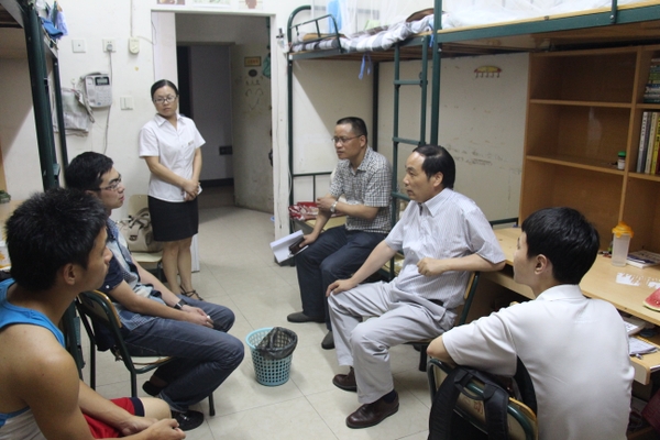 周國模還就寢室安裝空調(diào)、通風(fēng)透氣、加強寢室衛(wèi)生等話題和同學(xué)們進行了交流。