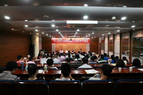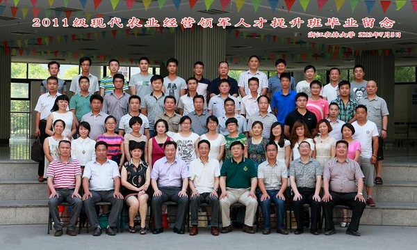 朱永法在畢業(yè)典禮上致辭。他向首屆(2011級)提升班學(xué)員圓滿完成學(xué)業(yè)表示熱烈祝賀,介紹了現(xiàn)代農(nóng)業(yè)經(jīng)營領(lǐng)軍人才提升班整體培養(yǎng)情況,并感謝各級領(lǐng)導(dǎo)和社會各界朋友的密切關(guān)注和高度重視。他向?qū)W員提出了四點(diǎn)希望:一是樹立終身學(xué)習(xí)的觀念;二是成為新型職業(yè)農(nóng)民的引領(lǐng)者、現(xiàn)代農(nóng)業(yè)經(jīng)營的領(lǐng)軍者;三是求真務(wù)實(shí),勇于擔(dān)當(dāng);四是積極關(guān)注母校的建設(shè)與發(fā)展。
