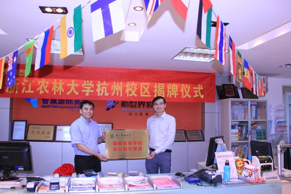 下午3點,在熱烈的掌聲中,張立欽和Frank朱共同為杭州教學基地揭牌,標志著浙江農林大學國際教育學院杭州教學基地正式宣告成立。