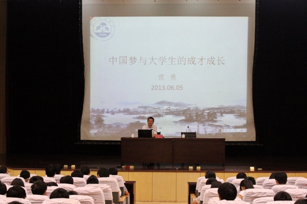 宣勇的報告分為“大國夢與大學的使命”、“中國的大學夢”、“農林夢與大學生的成才成長”三個部分。他透過人類歷史上大學對社會經濟發展的重大影響力,闡述了大學在實現大國夢中所發揮的特殊作用;在回顧我國建設著名大學的艱辛歷程,剖析當近高等教育發展中存在的各種問題之后指出,大學應該是誕生夢想的地方,進而闡述了農林夢與大學生成才成長的關系。報告最后,宣勇道出了對農林學子的期待,他希望大學生們能夠深刻領會大氣的境界、深度和氣勢 ,能夠行“天道、人道、明道”的大道,能夠擔“經世致用、務當世之務”的大任,胸存大志,懷抱夢想,將個人理想與祖國需要相結合,在成才成長的過程中,為實現農林夢、中國夢而努力。