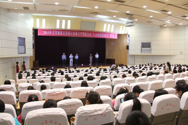 2013年青春健康走進浙江農林大學活動由臨安市計生協、學生處、公管處共同主辦。啟動儀式結束后,浙江廣播經濟頻道主持人舒馨老師作了主題為“關愛—讓青春更美麗”的青春健康知識講座。