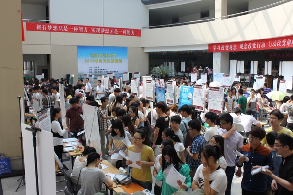 浙農林大新聞網訊 5月25日,由學生處主辦,就業指導服務中心承辦,大學生就業實踐社、大學生創業社、校廣播電臺協辦的“浙江農林大學2013年實習生招聘會”在東湖校區學生活動中心順利舉行。本次招聘會吸引了110余家企業前來招賢納才,共提供就業崗位1700余個。