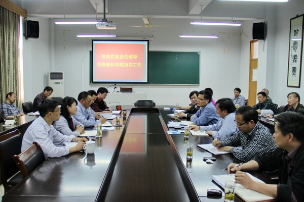 校辦、戰略處、資產公司負責人陪同調研。園林學院黨政領導、全體教學科研骨干教師參加會議。