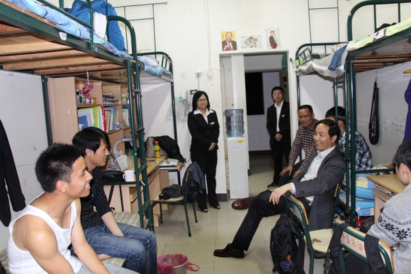 走訪中,周國模希望同學們在生活與學習中互相幫助共同進步,珍惜大學的同窗情誼,建立和諧的寢室同學關系。