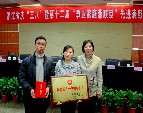 會議表彰了第十二屆“事業家庭兼顧型”先進個人和浙江省工會先進女職工組織、先進個人等先進。我校外國語學院榮獲浙江省“五一巾幗標兵崗”稱號;趙麗華、曾立新兩位教師榮獲2011-2012年度浙江省“事業家庭兼顧型”先進個人稱號。