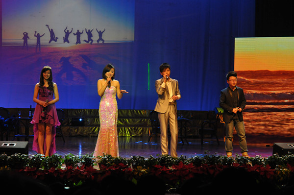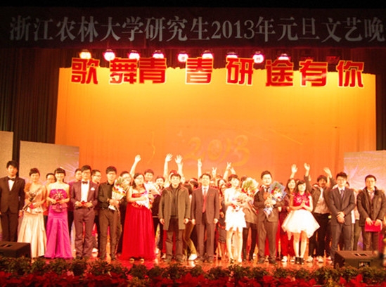 浙農林大新聞網訊 12月25日晚,研究生2013年元旦文藝晚會在活動中心影劇院成功舉辦。此次晚會由研工部主辦,研究生團工委、研究生委員會承辦。校黨委副書記方偉、副校長張立欽到場與一千兩百余名師生共同觀賞了晚會。