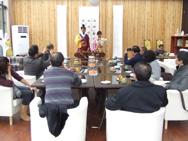 考察期間,專家組詢問了茶文化專業的招生和就業情況,查閱了茶文化相關的專著、教材及茶品牌等材料、實地考察了茶文化傳承基地現場,并觀看了由茶文化學生表演的“儒家茶禮”。