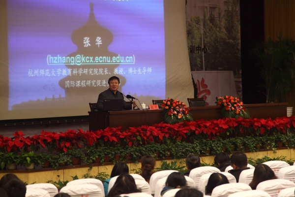 浙農(nóng)林大新聞網(wǎng)訊 12月20日,高校教師教學(xué)設(shè)計(jì)與研究實(shí)踐研修班暨浙江農(nóng)林大學(xué)2012年度第十期教師教學(xué)發(fā)展專家講壇在圖書館第一報(bào)告廳舉行。本次活動(dòng)由我校與教育部全國高校教師網(wǎng)絡(luò)培訓(xùn)中心聯(lián)合舉辦,是我校首次以免費(fèi)形式向全省兄弟院校開放。活動(dòng)邀請(qǐng)到國際著名教育評(píng)估專家澳門科技大學(xué)孫建榮教授、國際課程研究促進(jìn)協(xié)會(huì)主席杭州師范大學(xué)張華教授擔(dān)任報(bào)告主講嘉賓,省內(nèi)兄弟高校50余人、我校首期青年教師研修班、2012年度新教師崗前培訓(xùn)班、教務(wù)處及各學(xué)院(部)近400人參加了活動(dòng)。