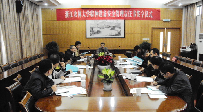 浙農林大新聞網訊 10月28日下午,學校召開特種設備安全工作會議。會議由學校特種設備安全管理領導小組組長、副校長王自勇主持,學校特種設備安全管理領導小組成員出席會議。