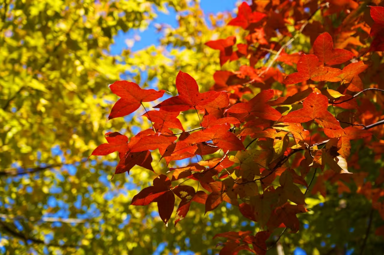 落葉如詩,金黃與楓紅,在風(fēng)中輕舞