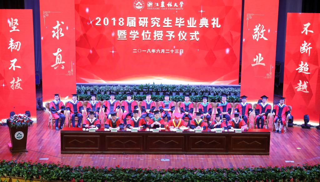 6月23日,學校隆重舉行2018屆研究生畢業典禮暨學位授予儀式。校黨委書記周國模,校長應義斌,副校長王自勇、金佩華、沈月琴,校黨委委員、宣傳部部長胡祖吉,校黨委委員、組織部部長童曉暉等出席典禮,典禮由校黨委副書記史永安主持。
