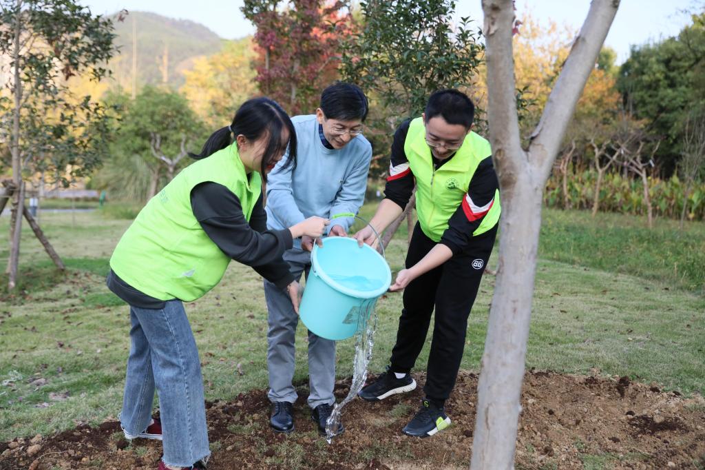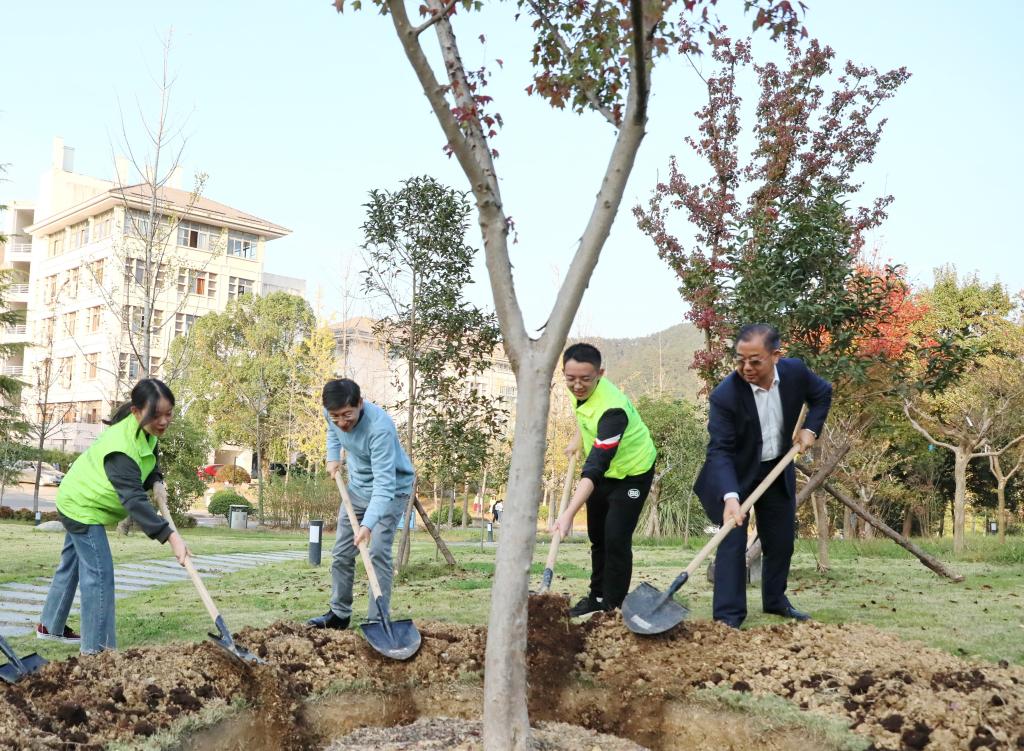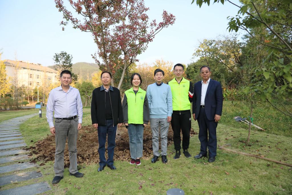 11月6日,中科院院士、強電磁工程與技術專家王秋良一行來??疾?,校黨委書記沈滿洪、黨委副書記馮尚申等陪同。王秋良院士參觀了東湖校區,并東湖校區院士林親手種下一棵三角楓。院士一行還參觀了校史館和農作園。