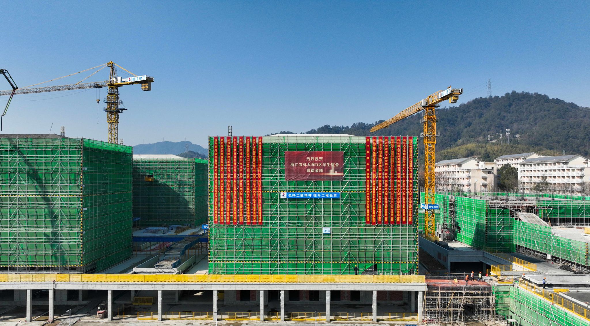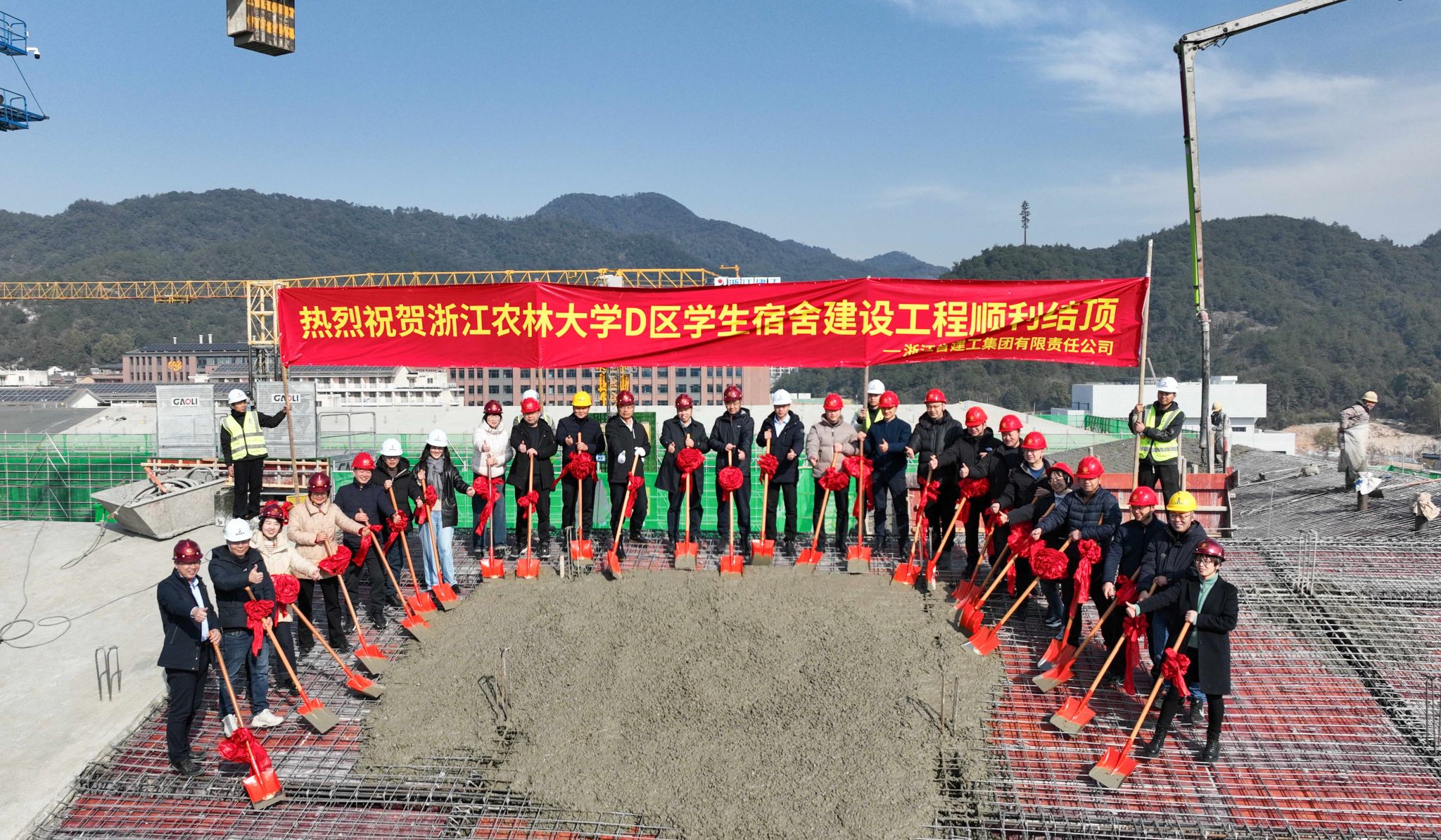 伴隨著最后一方混凝土的澆筑到位,近日,浙江農(nóng)林大學東湖校區(qū)D區(qū)學生宿舍建設(shè)工程兩幢宿舍樓主體結(jié)構(gòu)順利結(jié)頂。該工程預(yù)計2025年9月份交付,屆時將為學校新增2800余張床位。