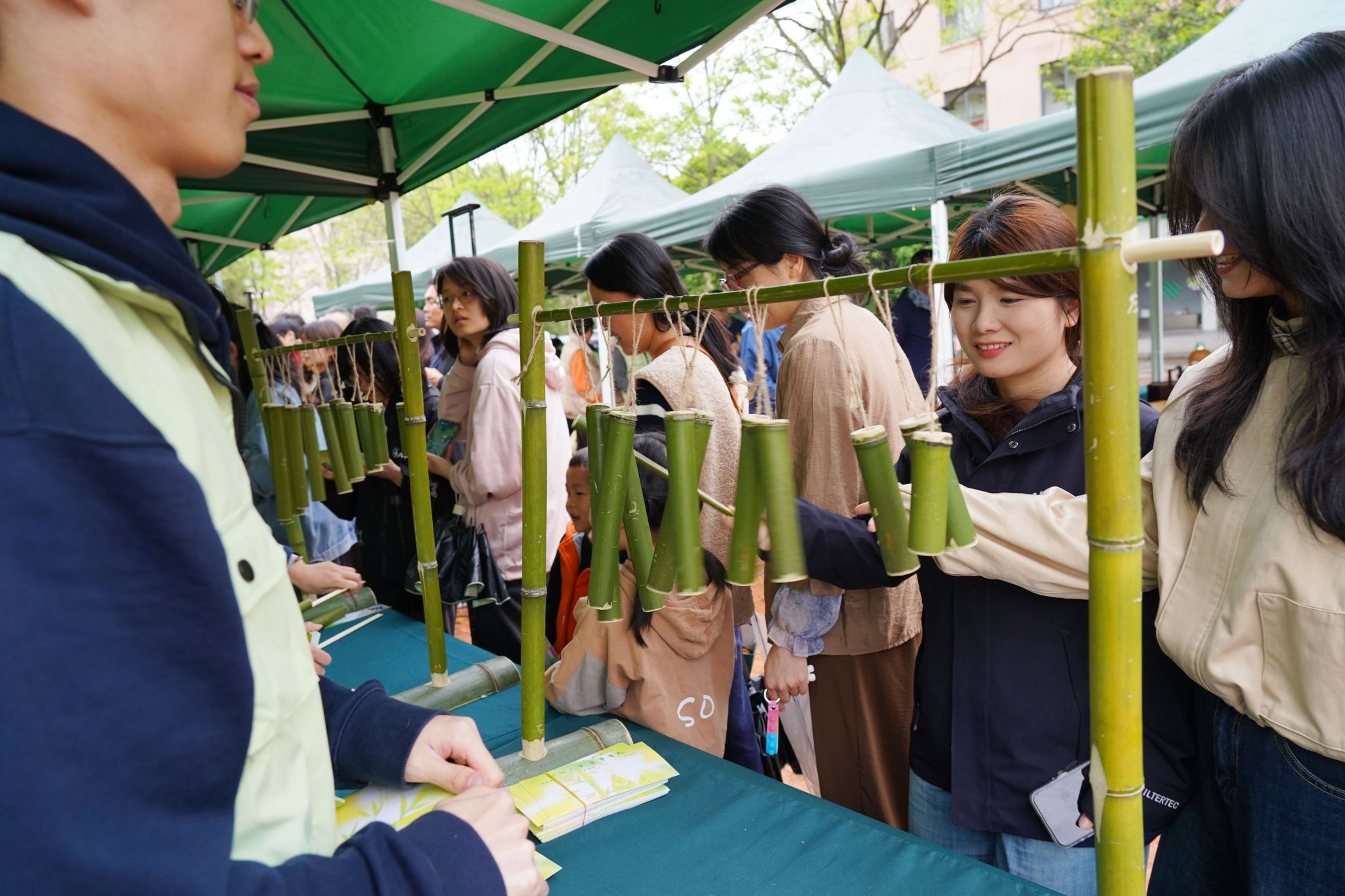 當日,浙江農林大學2025年筍宴正式啟幕。數千名師生在這里參與剝筍比賽、學燒筍菜、品嘗竹筍佳肴,體驗竹子領域的最新科技成果,欣賞竹材設計的工藝品,感受竹詩詞、竹音樂等竹文化。