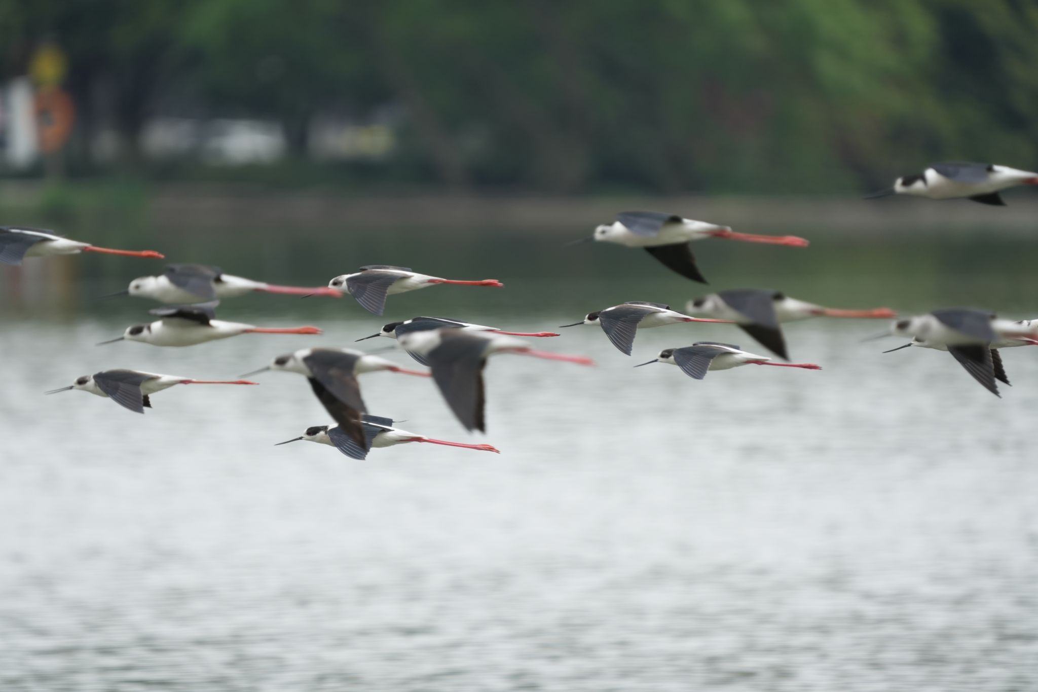 浙江農(nóng)林大學(xué)植物園辦公室教師葉喜陽回憶:“4 月 9 日清晨,我在東湖邊發(fā)現(xiàn)了這群黑翅長腳鷸,大概有近 20 只,當(dāng)時(shí)它們在淺水區(qū)覓食,偶爾在湖面飛翔。不過第二天再去,它們就已經(jīng)飛走了。”
