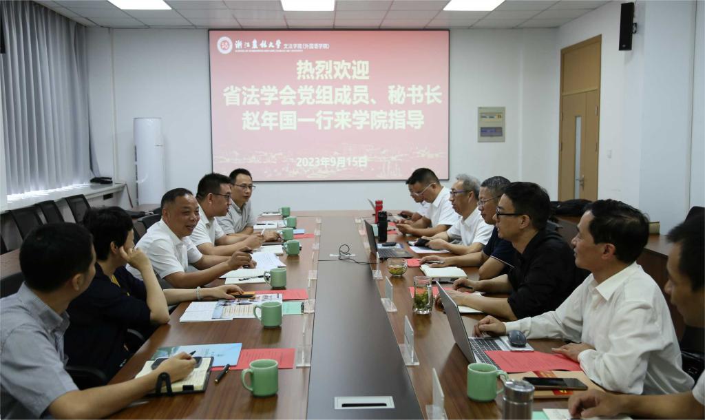 9月15日上午,省法學會黨組成員、秘書長趙年國到文法學院調研所屬研究會2022年工作和2023年思路以及意識形態工作責任制落實情況。省法學會研究部主任樓杰科、二級調研員胡錚、辦公室副主任傅暨安、研究部副主任陳亮、一級主任科員陳羽等隨同調研。文法學院院長魯可榮以及掛靠的3個二級研究會會長、法學專業負責人等參加座談。