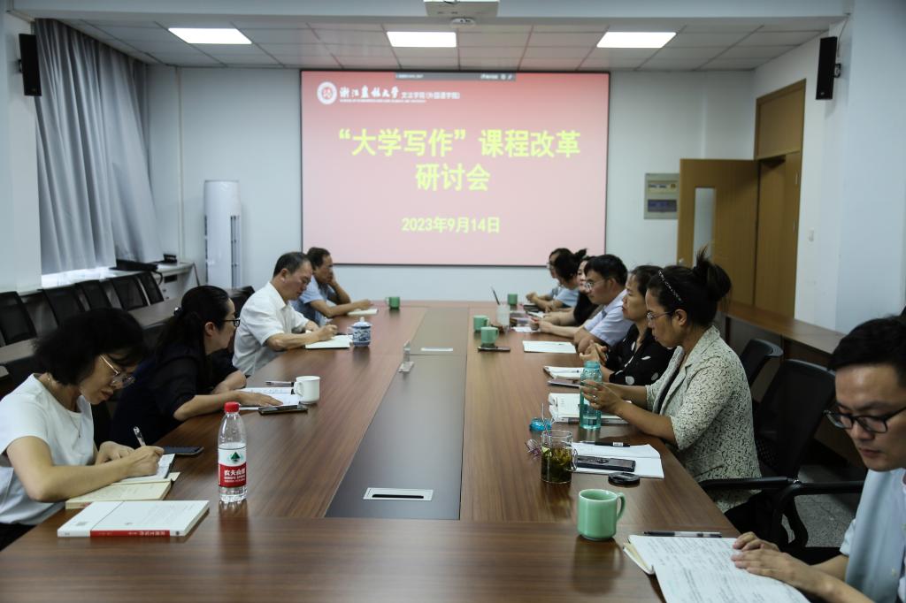 9月14日下午,文法學院舉行《大學寫作》課程改革研討會。教務處處長郭建忠,文法學院黨委書記朱紅東及相關負責人,大學寫作中心教師參加研討會。