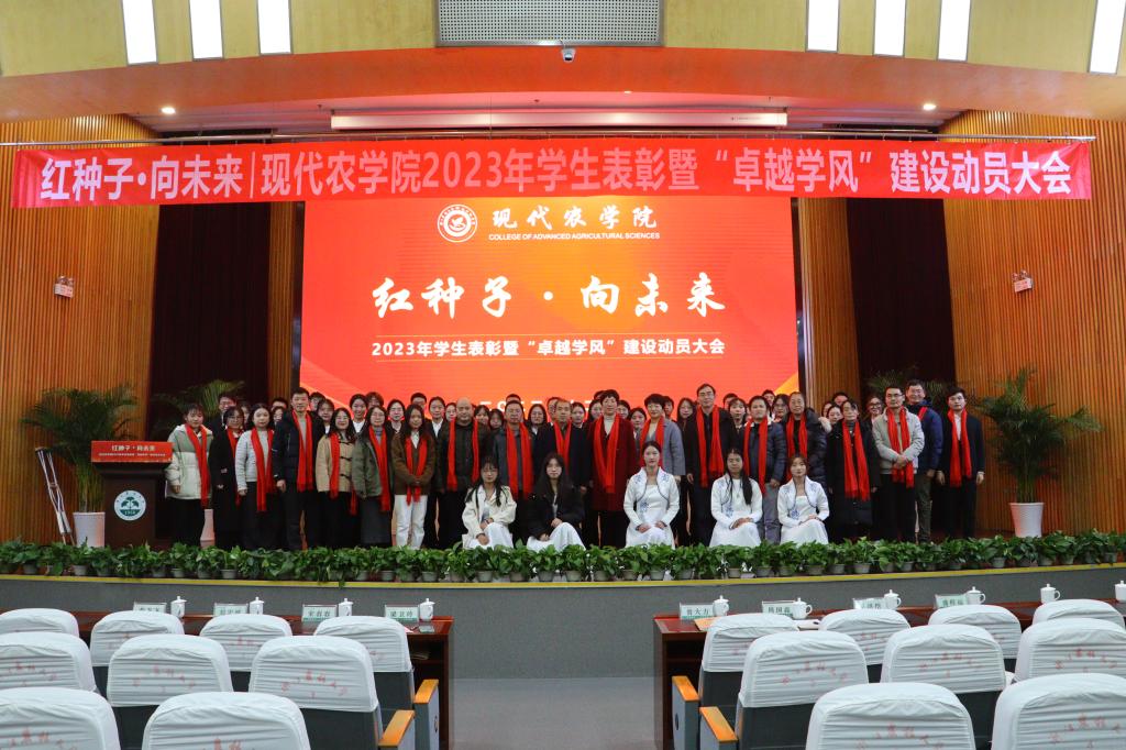 12月27日晚,農(nóng)學(xué)院舉辦“紅種子·向未來(lái)”2023年學(xué)生表彰暨“卓越學(xué)風(fēng)”建設(shè)動(dòng)員大會(huì)。學(xué)院黨政領(lǐng)導(dǎo),學(xué)科專業(yè)相關(guān)負(fù)責(zé)人,全體班主任、輔導(dǎo)員,教師代表,受表彰學(xué)生代表,2022、2023級(jí)本科生及研究生代表參加活動(dòng)。