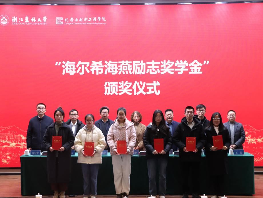 據悉,“海爾希海燕勵志獎學金”由杭州海爾希畜牧科技有限公司捐贈,每年5萬元,連續資助3年,所捐贈資金全部用于資助化材學院應用化學專業的優秀學子,本次為首次評選,通過學生申報、學院審核、評審和公示等環節,最終33名同學分獲一二三等海爾希海燕勵志獎學金。