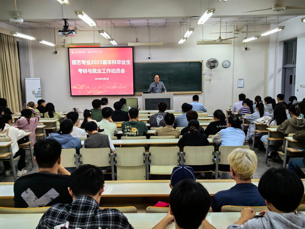 4月2日晚,園藝學院舉行2025屆本科畢業生考研與就業工作動員會。學院黨委書記何振波、學院學生工作負責人、全體輔導員、2025屆本科畢業生參加動員會。