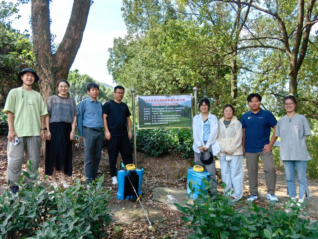 在杭州九清農業開發有限公司,企業負責人帶隊參觀介紹三清園茶場,并詳細介紹了學院“新型水溶肥”合作項目的田間試驗情況,展示了校企合作的初步成果。