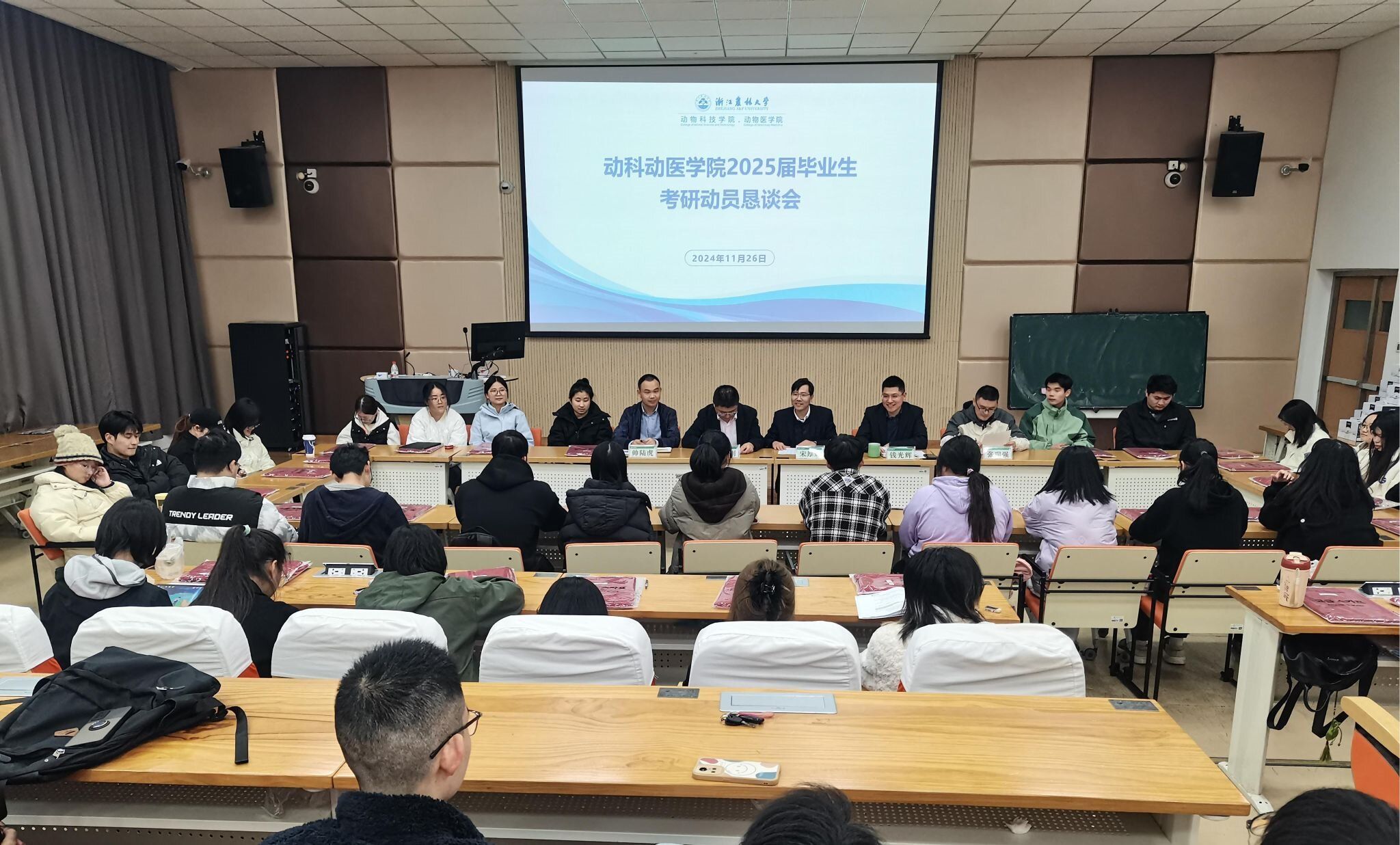 11月26日,動科動醫學院召開2025屆畢業生考研動員懇談會。校黨委委員、動科動醫學院院長宋厚輝、動科動醫學院黨委、學科相關負責人及2025屆考研學生參加活動。