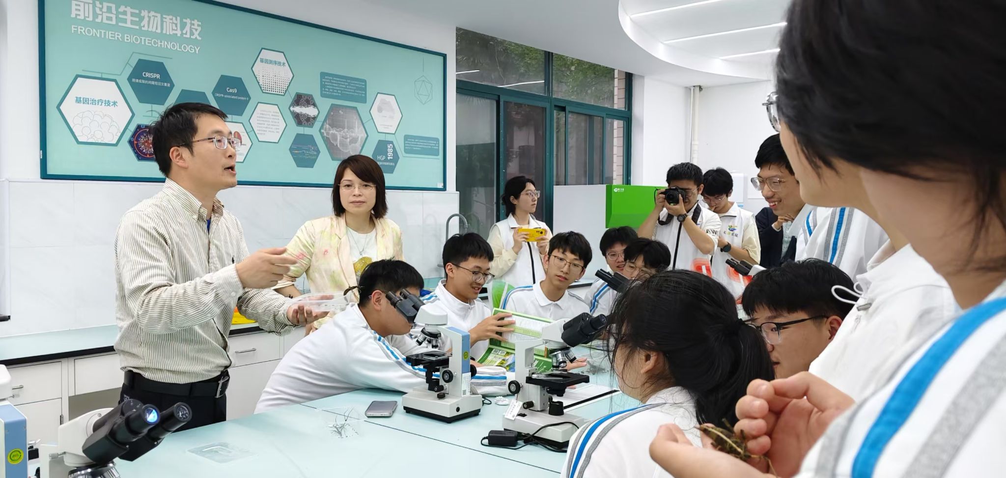 農學院一行參觀了西湖高級中學的昆蟲博物館。雙方就深化校際合作、協同發展高等教育與基礎教育路徑展開深入交流,表示可以將社團指導作為高校和中學之間的聯系紐帶,加強前置銜接教育為高校輸送更多具有生命科學素養的優質生源,對學院未來在西湖高級中學的招生進行了展望。