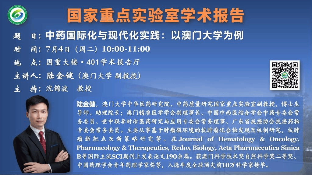 講座預告:中藥國際化與現(xiàn)代化實踐:以澳門大學為例