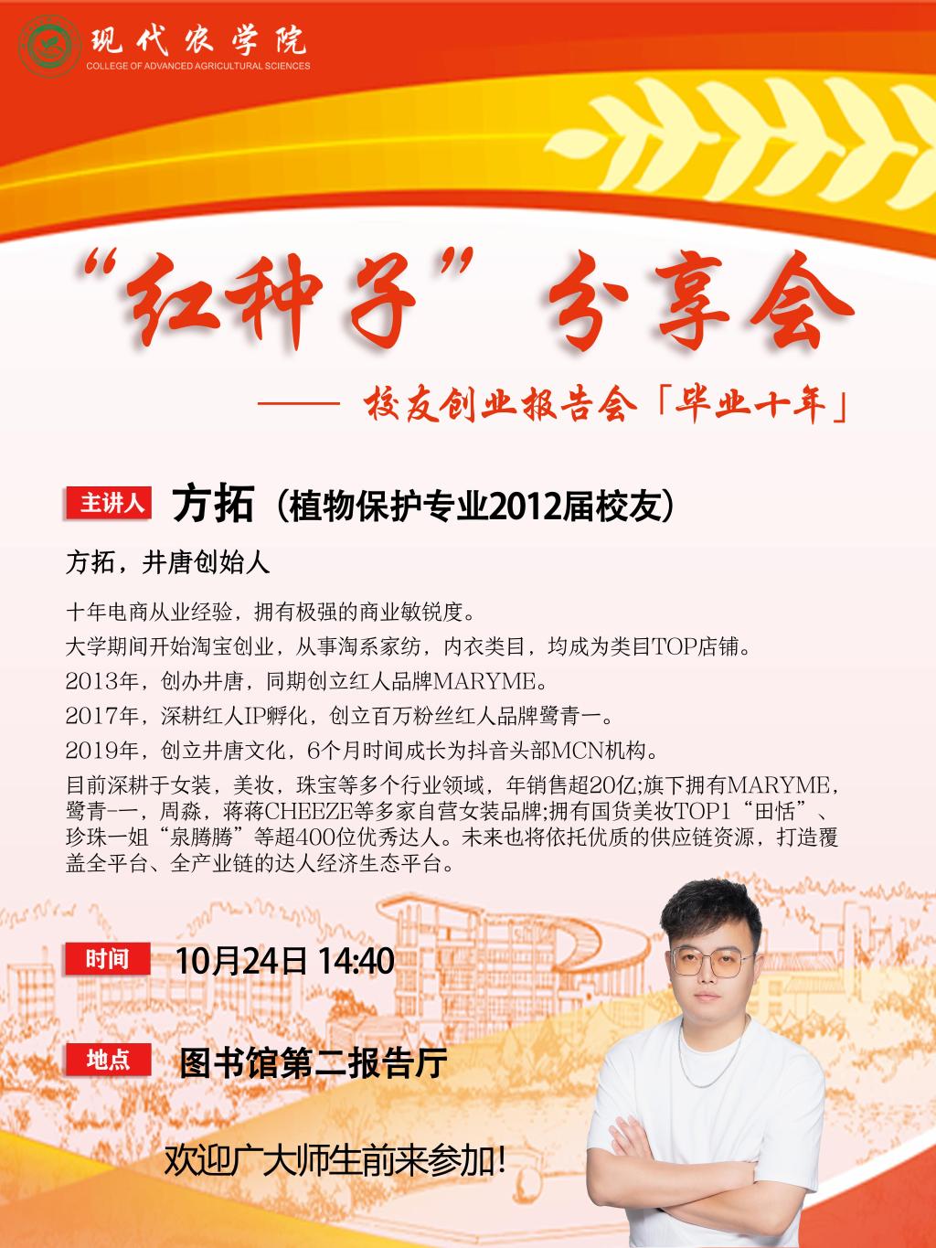 講座預告:“紅種子”分享會——校友創業報告會「畢業十年」