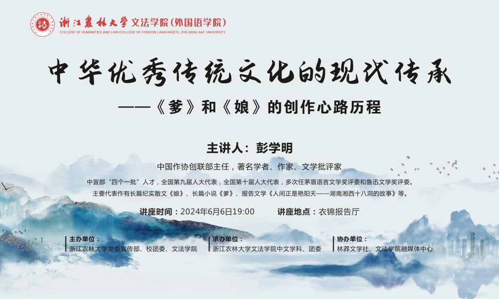 講座預告:中華優(yōu)秀傳統(tǒng)文化的現(xiàn)代傳承——長篇小說《爹》和《娘》的創(chuàng)作心路歷程