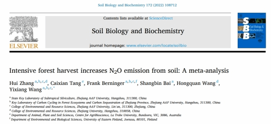 國家重點實驗室王懿祥教授課題組在SBB發表有關重度森林采伐增加土壤N2O排放的研究論文