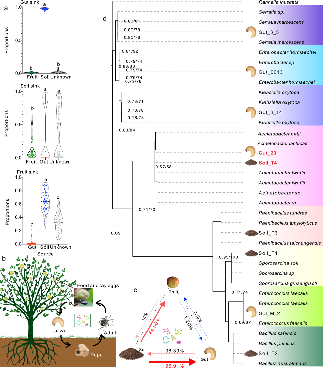 圖1.茶籽象腸道、蛹室土壤、及油茶果實(shí)微生物組多樣性分析