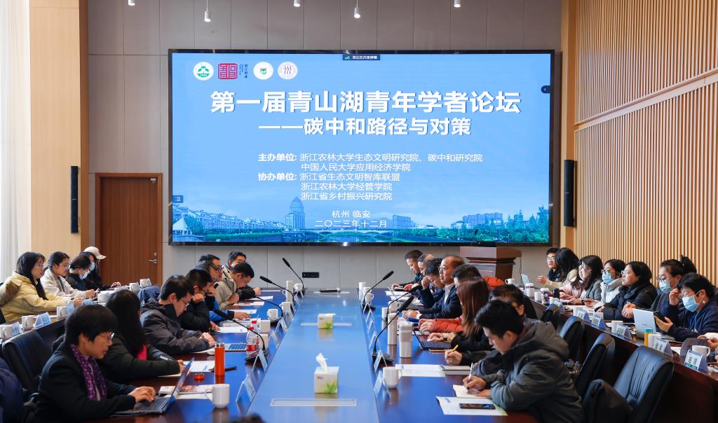 12月16日、17日,為進一步推進碳中和目標的實現,由浙江農林大學生態文明研究院、碳中和學院和中國人民大學應用經濟學院共同主辦的“第一屆青山湖青年學者論壇——碳中和路徑與對策”在國重大樓舉行。