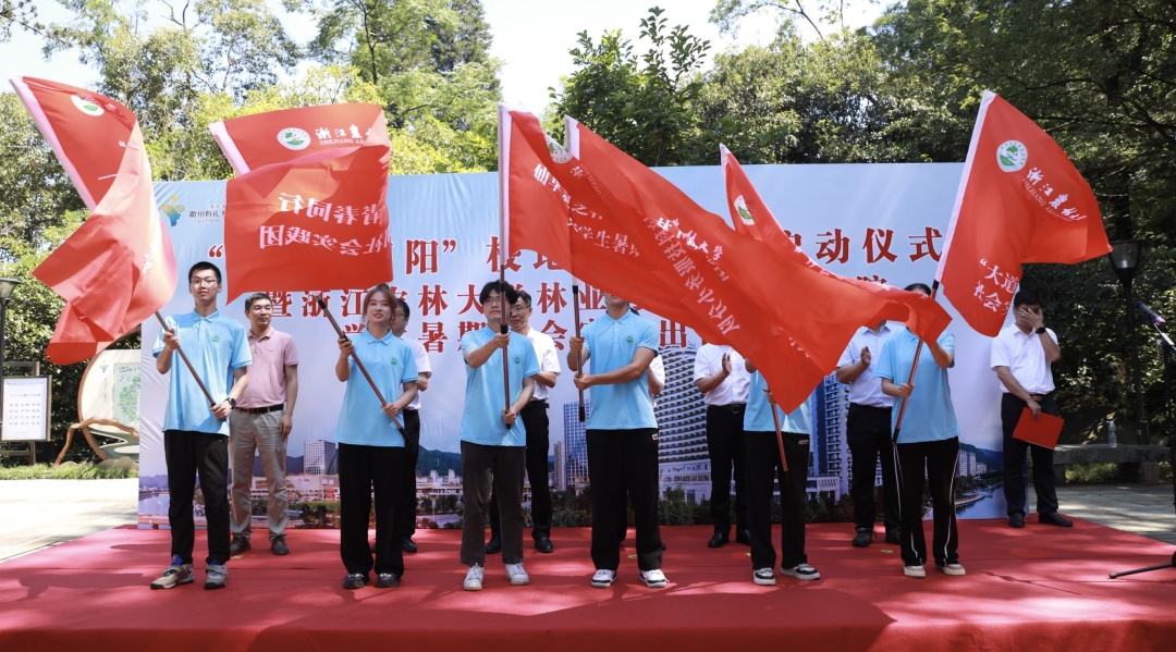 出席儀式的領(lǐng)導(dǎo)為“六大專家團(tuán)隊(duì)”代表授牌,并為暑期社會(huì)實(shí)踐隊(duì)伍授旗。
