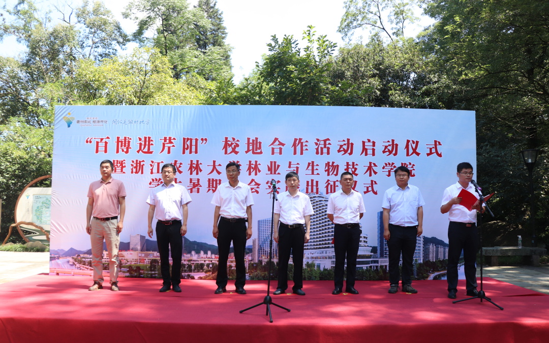 7月5日,林生院黨委書記鄭炳松一行趕赴開化,參加“百博進(jìn)芹陽(yáng)”校地合作活動(dòng)啟動(dòng)儀式暨暑期學(xué)生社會(huì)實(shí)踐出征儀式。學(xué)院相關(guān)負(fù)責(zé)人,開化縣副縣長(zhǎng)張?jiān)聵颉⒖h政府黨組成員吳一鳴、芹陽(yáng)辦事處黨工委書記鄭凱等相關(guān)領(lǐng)導(dǎo),林生院師生代表,地方各村社職能站所負(fù)責(zé)人九十余人參加活動(dòng)。