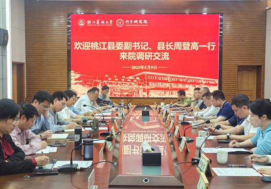 5月9日,湖南桃江縣委副書記、縣長周登高一行來竹子研究院調(diào)研,交流合作事宜。竹子研究院黨政領(lǐng)導(dǎo)班子、各創(chuàng)新團(tuán)隊(duì)負(fù)責(zé)人等參加座談。座談會由竹子研究院名譽(yù)院長方偉主持。