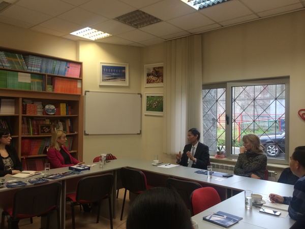 塞爾維亞當地時間3月10日,諾維薩德大學孔子學院中外方院長趙有華應邀與中國駐塞爾維亞使館教育組一等秘書孫新泉、貝爾格萊德John Naisbitt大學副校長Ana Jovancai等進行了“三方會談”。三方就諾大孔院與John Naisbitt大學“中國中心”共同合作創建下設孔子課堂,進一步推廣漢語和中國文化跨地區發展等相關事宜進行了交流。