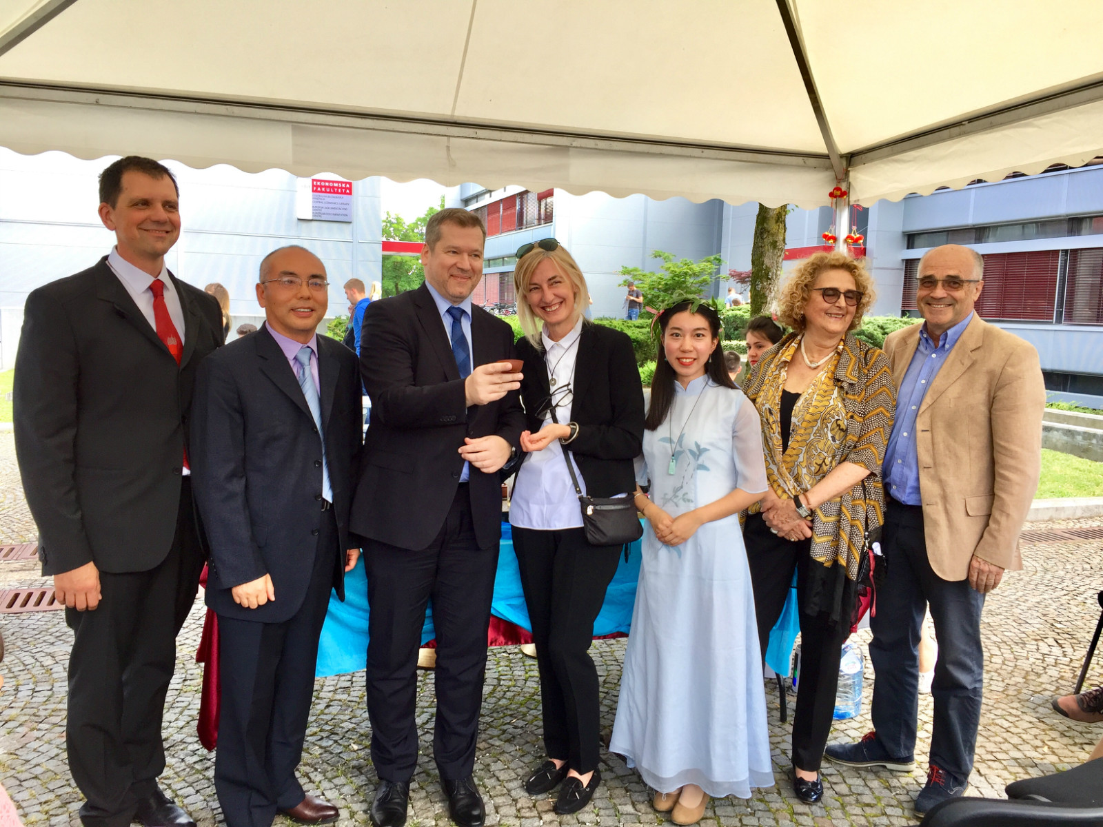 當地時間5月9日至10日,諾維薩德大學孔子學院中方院長陳晦、塞方院長伊凡娜·捷萬契維奇·賽凱露絲(Ivana ?ivan?evi?-Sekeru?)攜諾大孔院師生,參加斯洛文尼亞盧布爾雅那大學孔子學院的文化周活動,呈現中國茶藝并推廣茶文化。