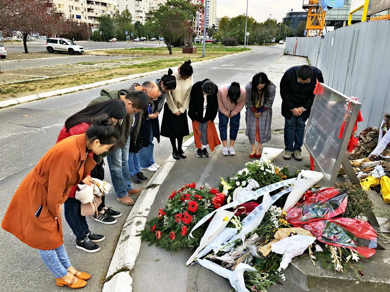 當地時間9月30日,在國內舉國同慶祖國69華誕之際,塞爾維亞諾維薩德大學孔子學院全體教師前往首都貝爾格萊德櫻花路3號,憑吊邵云環、許杏虎和朱穎3位烈士。